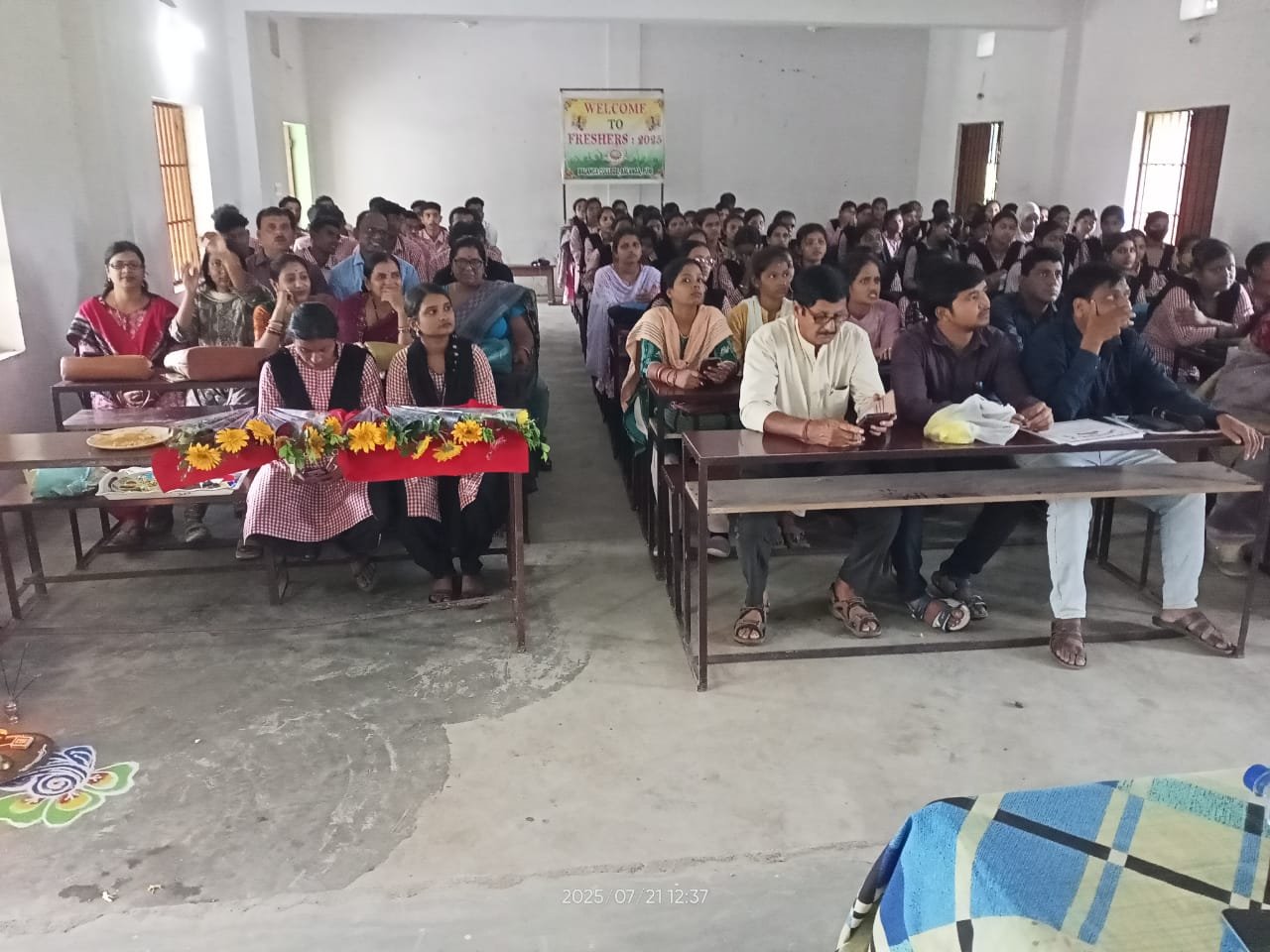 Behest of IQAC, BALANGA COLLEGE, BALANGA, PURI, an Induction program is organized for the Degree FRESHERS of Arts, Science & Commerce under the chairmanship of the Principal ,Prof. Prabhat Kumar Sahoo.The freshers were ignited on NEP-2020 by the lect.in Education,Mr. Nilakantha Mishra, code of conduct of the college by Commerce H.O.D, Mr. Binaya Kumar Mishra and the tips to be an ideal student by the Botany HOD.Mrs. Rajalaxmi Mohapatra. The Principal Prof.Sahoo presented the detailed information about services rendered by the college ,wings running inside college, the officer-in- charge of varied wings/ responsibilities and information about Internal Complaint Committee (ICC), Help line number 181 for protection and safe environment for the girl students and female employees of an educational complex and the newly interoduced Shakti Shree App. College level Hons. Toppers (2025 U.U.Exam.)such as Swatirekha Sahoo(Eco),Karina Mallick (Education), Sradhanjali Debata(Philosophy),Priyanka Sahoo(Pol.Sc.),Snigdharani Bhol(History),Babul Swain(Commerce),Sushree Pragnya Paramita Jena(Physics), Pratiksha Priyadarshini Deo(Zoology),Satyabrat Dash(English),Satyajit Bhuyan(Odia)Jyotirmayee Dixit(Sanskrit) were felicitated by the Principal with certificates,medals and bouquets. Programme was co-ordinated by Edn. HOD. Dr. Prados Kumar Pati,Vote of Thanks was addressed by Odia HOD Mr. Mithun Mallick. More than 150 students, Lectures like Mr Balabhadra Rath, Mr.Brajabandhu Pradhan, Mr. Ashok Kumar Subudhi, Sanskrit HOD Mr. Kelu Charan Panda, Biswanath Chuhan etc.and non- teaching staff were present.